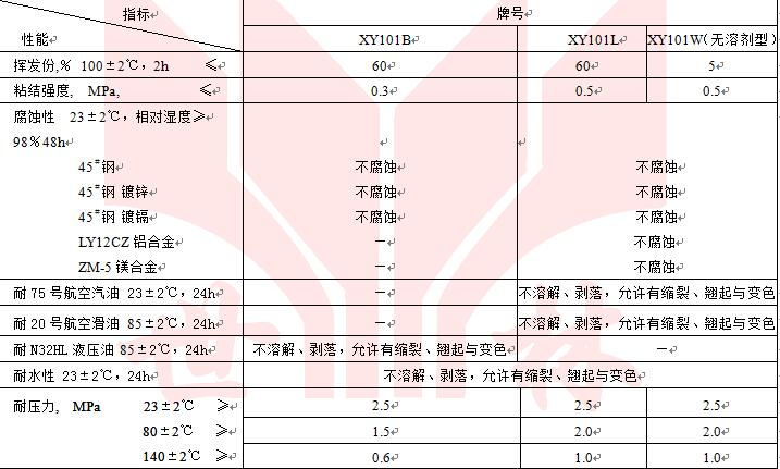 XY101各型密封膏為不干性粘彈型液態(tài)密封墊,它具有耐水、耐水與乙二醇或水與甲醇的混合物,耐汽油、噴氣燃料、礦物油、合成潤(rùn)滑油、耐渦輪發(fā)動(dòng)機(jī)燃燒產(chǎn)物等,它適合于航空發(fā)動(dòng)機(jī)的附件機(jī)匣與壓氣機(jī)機(jī)匣結(jié)合面、附件機(jī)匣與附件安裝面等處的密封。也適合于其它發(fā)動(dòng)機(jī)、大型機(jī)械或設(shè)備的相關(guān)部位密封。通常其密封間隙應(yīng)小于0.04mm。但不適合于大間隙以及薄壁焊接件及沖壓件的結(jié)合面密封,也不適于帶坡度的結(jié)合面密封。其工作溫度為-50~+250℃,短期可達(dá)300℃。 |